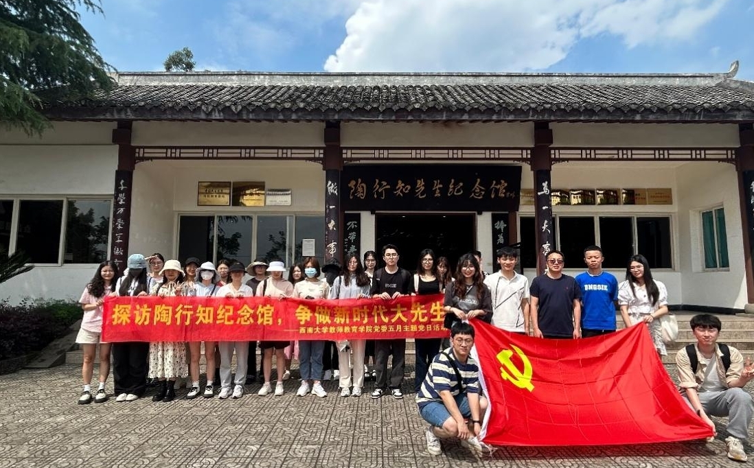 为深入学习贯彻习近平新时代中国特色社会主义思想,近日,教师教育学院党委运用红色教育资源,结合教师教育学科发展特点,组织学院党委委员、党支部书记、毕业生党员、新生党员代表赴合川开展“探访陶行知纪念馆 争做时代大先生”主题党日活动。