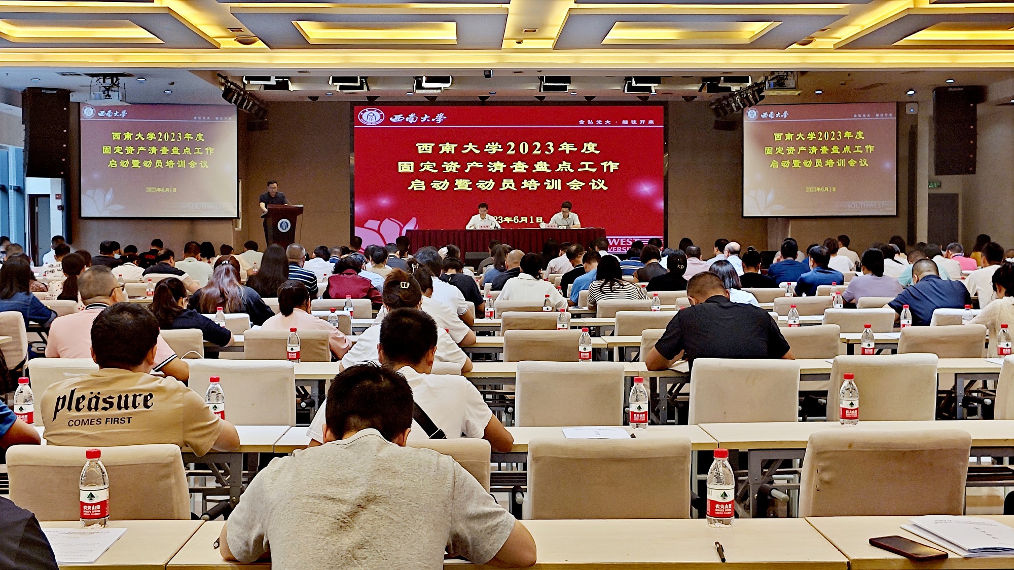 6月1日,学校2023年度固定资产清查盘点工作启动暨动员培训会在国际学院报告厅举行。学校党委书记李旭锋、副校长赵国华出席会议。财务部及实验室建设与设备管理处、后勤保障部、图书馆、博物馆等归口管理部门负责人,各资产使用单位负责人,各类资产归口管理员及各单位资产管理员参加会议。会议由赵国华主持。