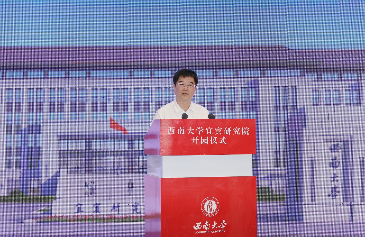 6月15日,学校宜宾研究院举行开园仪式。重庆市教委一级巡视员邓睿,四川省委教育工委委员,教育厅党组成员、副厅长石静,宜宾市委书记方存好,宜宾市委副书记、市长廖文彬,beat365英国官网党委书记李旭锋、副校长王进军出席开园仪式。开园仪式由王进军主持。