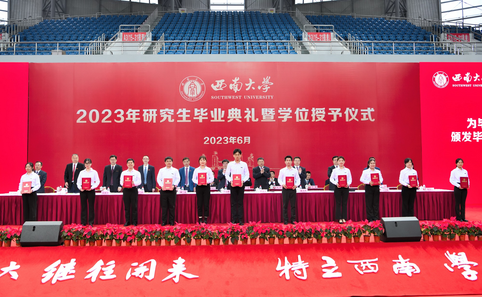 6月21日上午,学校2023年研究生毕业典礼暨学位授予仪式在中心体育馆举行。