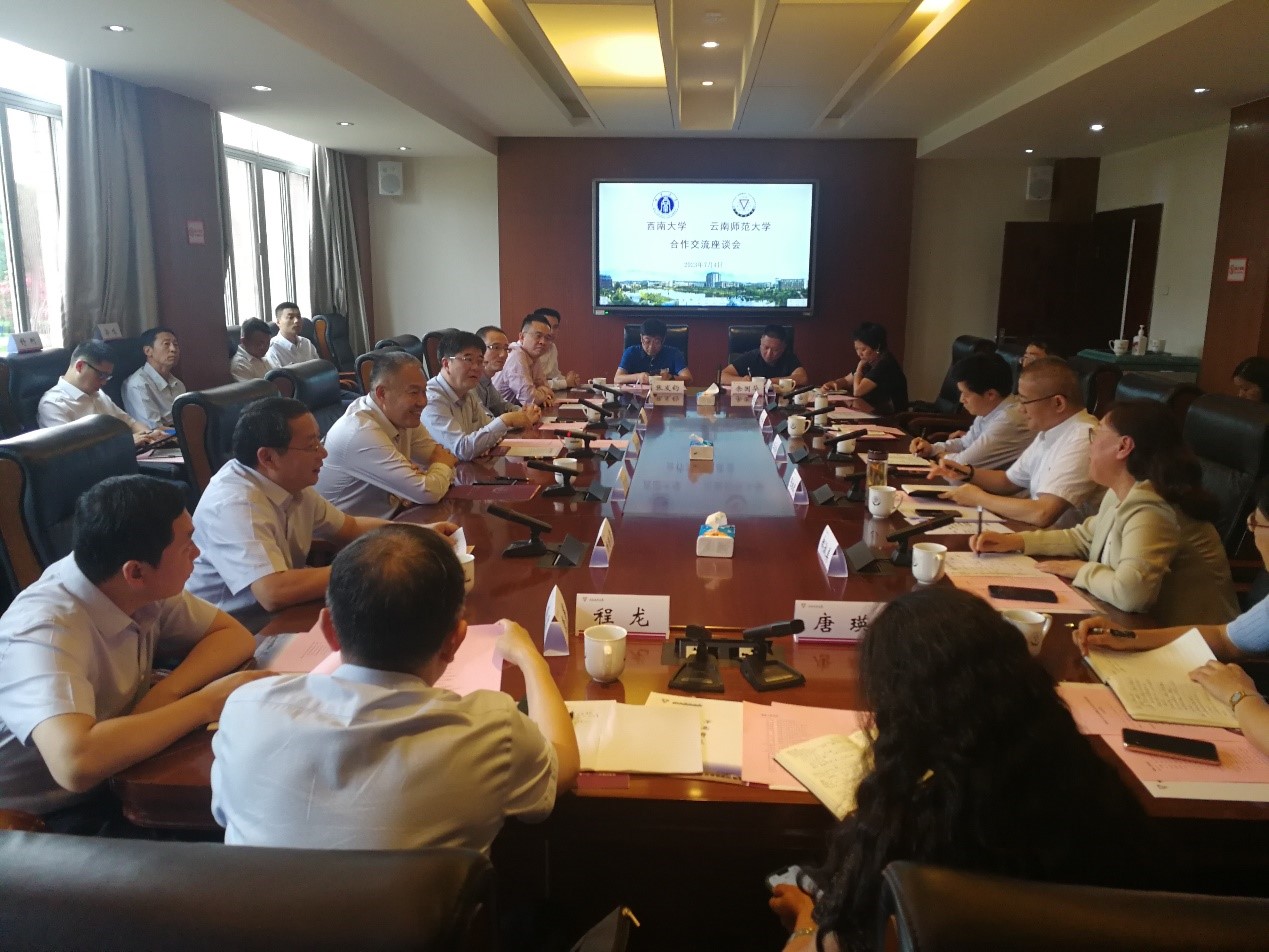 在云南师范大学,张祖武介绍了云南师范大学在学科建设、人才培养、科学研究、对外合作等方面情况,希望与学校加强互动交流,在学科共建、人才互聘、服务社会等方面深化合作。李旭锋指出,学校与云南师范大学同处西部,两校应充分发挥自身特色优势,找准合作重点,以项目为载体,务实有效推进校际交流合作。