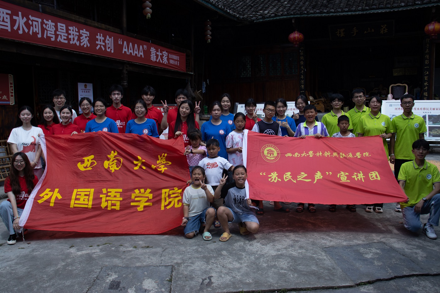 7月1日至3日,外国语学院、材料与能源学院共同组建“英材”暑期三下乡实践团,赴重庆酉阳开展了为期3天的实践活动。实践团去到龙潭镇、酉水河镇等地,体悟红色精神,体验土家文化,观摩乡村振兴成果;结合自身所学,开展乡村支教活动;聚焦留守儿童受教育情况与乡村教育发展现状作“优师计划”调研。