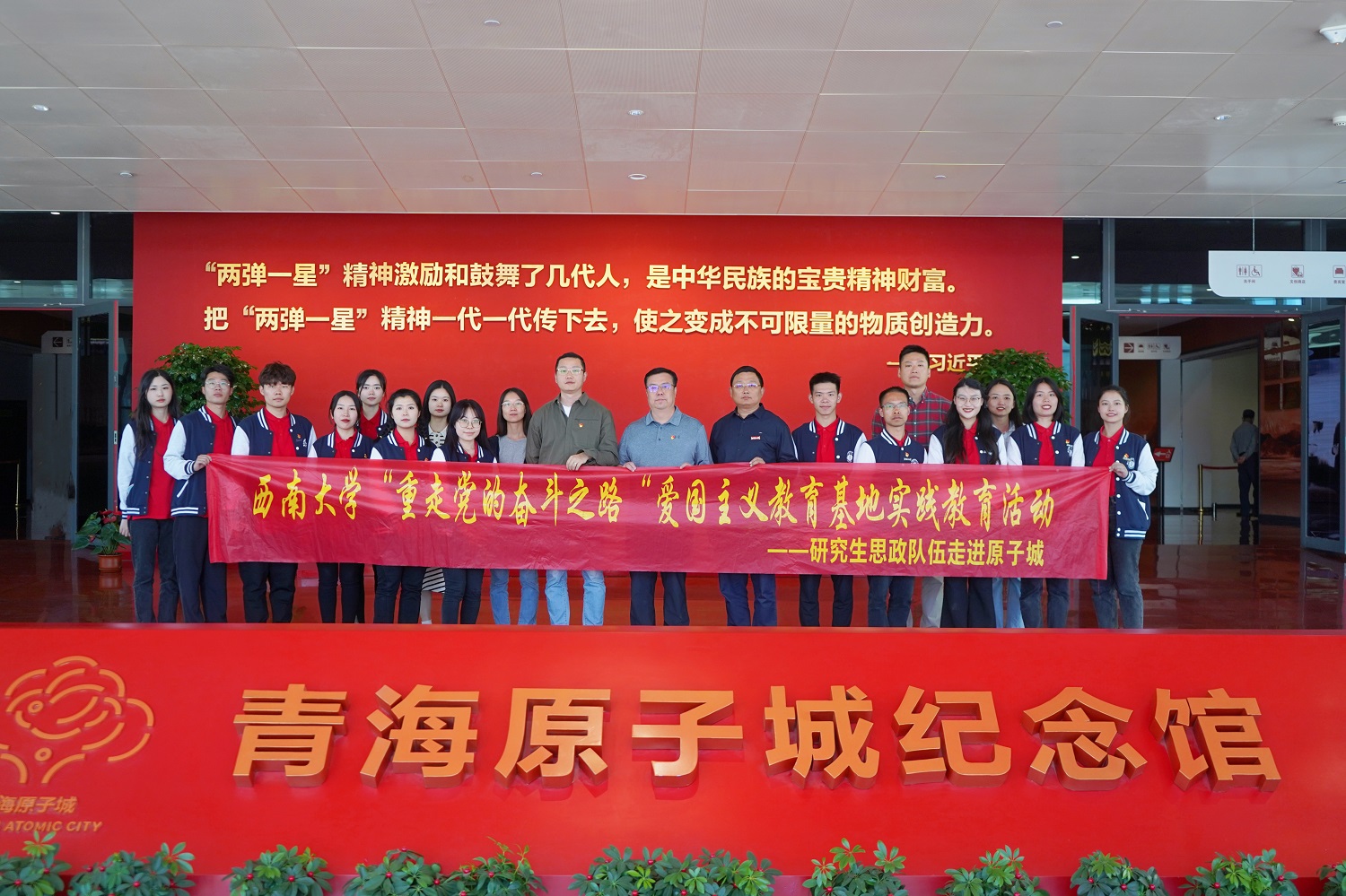 为深学笃行党的二十大精神,推动学习贯彻习近平新时代中国特色社会主义思想主题教育走深走实,7月17日至19日,副校长王进军带领学校研究生思政队伍20余名师生代表赴位于青海海晏的全国爱国主义教育示范基地原子城开展红色主题教育实践活动。