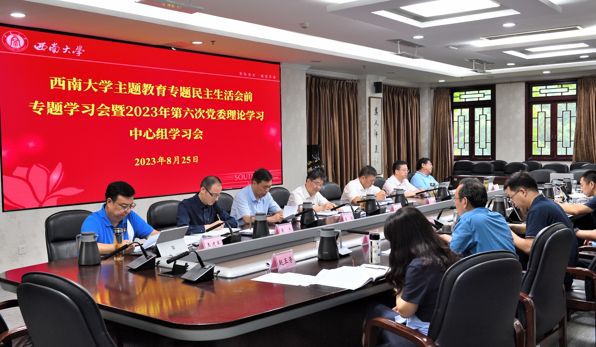 8月25日上午,学校召开主题教育专题民主生活会前专题学习会暨2023年第六次党委理论学习中心组学习会,为开好主题教育专题民主生活会打牢坚实思想基础。党委书记李旭锋主持会议并讲话。
