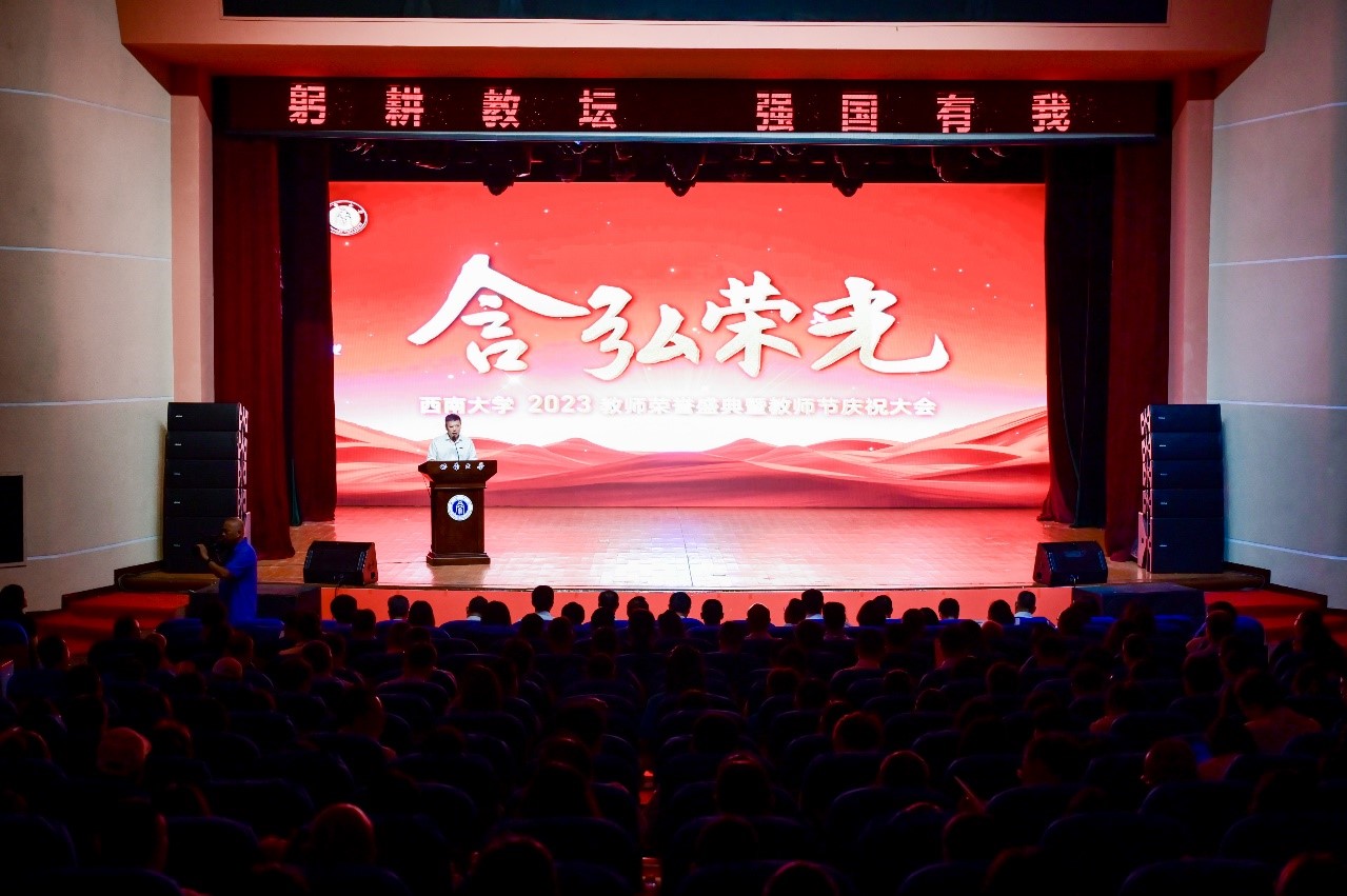 9月8日,学校在光大礼堂举行“含弘荣光”——beat365英国官网2023教师荣誉盛典暨教师节庆祝大会。学校领导、各单位负责人,2022—2023学年度从教30年教职工、退休教职工、国家级和省部级荣誉称号获得者、新晋国家级人才、新聘含弘人才岗教师、新进教师,以及教师和学生代表参加了庆祝大会。