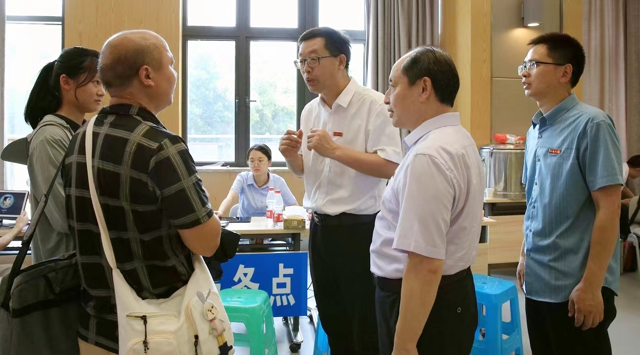 在荣昌校区2023级新生报到集中接待点,赵国华先后到商贸学院、动物科学技术学院、动物医学院、水产学院集中报到处和财务服务点、后勤服务点、医疗服务点,关心和了解报到人数、迎新流程、宿舍安排、后勤保障等相关情况,看望2023级新生和家长,慰问坚守在迎新一线的工作人员和志愿者们。赵国华同新生及家长亲切交谈,询问新同学初入校园的感受,听取家长的意见和建议,对同学们的到来表示热烈欢迎,祝愿新生在beat365开启充实而有意义的学习生活之旅。他强调,全校要统一思想,统一行动,充分发挥荣昌校区党工委、管委会统筹协调功能,按照一体化要求推进落实各项管理服务工作,为学校教育教学和人才培养提供坚实支撑。