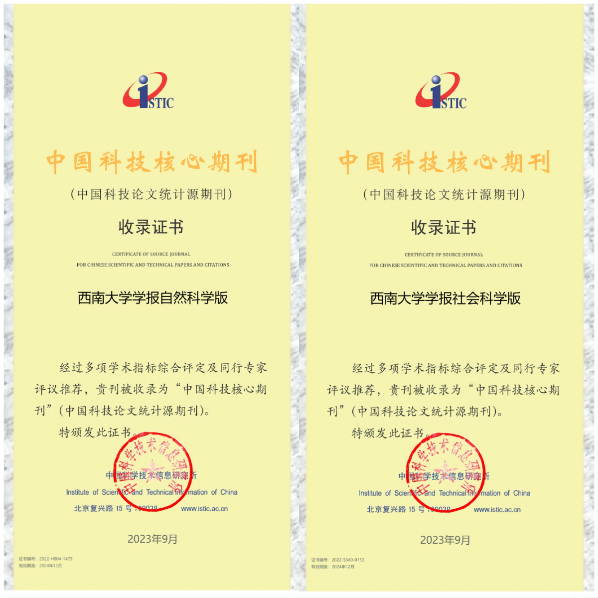 9月20日,中国科学技术信息研究所(ISTIC)发布2023年中国科技核心期刊目录,学校主办的《beat365英国官网学报(自然科学版)》《beat365英国官网学报(社会科学版)》《保健医学研究与实践》《西南师范大学学报(自然科学版)》四种期刊继续入选“中国科技核心期刊”。