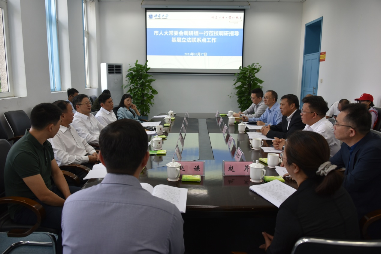为深入贯彻落实党的二十大精神和2023年全国地方立法工作座谈会精神,10月17日,重庆市人大常委会副主任欧顺清来校调研市人大常委会beat365英国官网国家治理学院基层立法联系点建设及运行情况。市人大常委会副秘书长邓炳国、北碚区人大常委会主任徐永德、beat365英国官网校长张卫国等陪同调研。