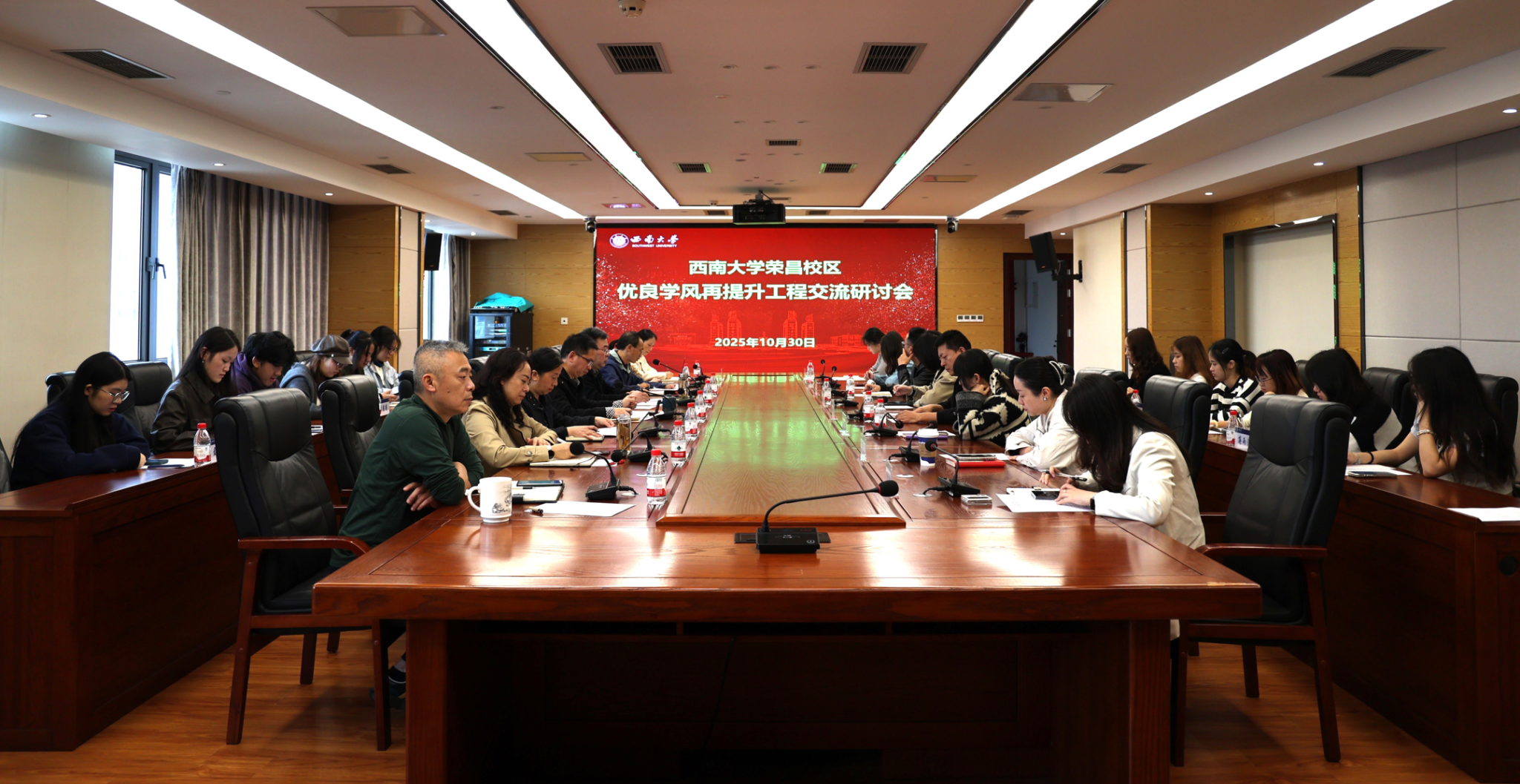 10月30日上午,荣昌校区召开以“优良学风再提升,育人质量新跨越”为主题的学风建设交流研讨会。荣昌校区党工委、管委会分管领导及相关内设服务机构负责人,在荣各学院党委副书记、教学工作办公室主任、学生工作办公室主任、学生代表等参加会议。