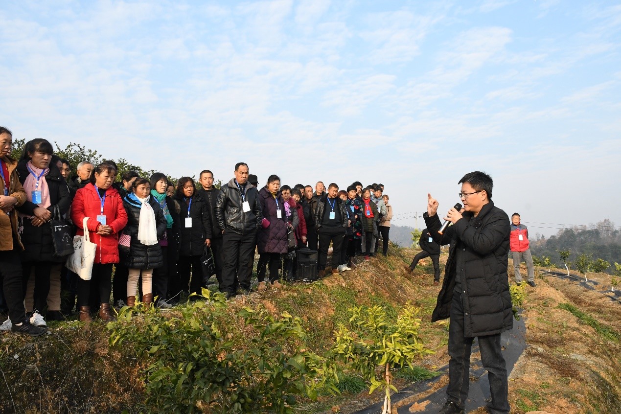 把双脚扎进泥土里,把论文写在田地上。多年来,付行政教授积极奔走在产业一线,无论酷暑寒冬、刮风下雨,在田间地头都留下了他指导果农进行柑橘树整形修剪、喷药施肥的身影。付教授负责了重庆垫江、璧山、涪陵、万州、江津、铜梁以及湖北宜都、秭归、云南昌宁、浙江衢州等多地示范园的建设规划以及栽培管理技术服务,面对有些地方产业萧条,果农信心不足、不愿配合的情况,他没有轻言放弃,从最初建立微信交流群随时进行线上技术指导和生产过程跟踪,到频繁奔赴实地指导果农科学修剪、施肥,付教授付出的累累心血赢得了果农们的信任—这位beat365英国官网的教授是真心实意来帮助他们渡过难关。更重要的是,在付教授的指导下,采用科学的栽培管理办法,原来几近荒废的柑橘园恢复了生机,村集体收入稳步上涨,随着腰包慢慢鼓起来,果农们脸上的笑容也明显多了起来。而这,也只是付教授在科技助农道路上的一点缩影。此外,为了帮助提高当地柑桔生产管理水平,付教授在多地持续开展柑橘整形修剪、营养施肥、花果管理等系列理论与实践技能培训,累计指导和培训达万余人次。其中,他全程指导建设的垫江丰达农业科技发展有限公司240亩果园、重庆璧山橘为农业有限公司300亩果园、湖北宜都姚家店镇180亩精品园等,均已成为当地重点示范果园。付教授及其所带领的团队,在柑桔研究所和相关产区十余年躬耕,为果农致富和助力柑橘产业振兴做出了重要贡献。