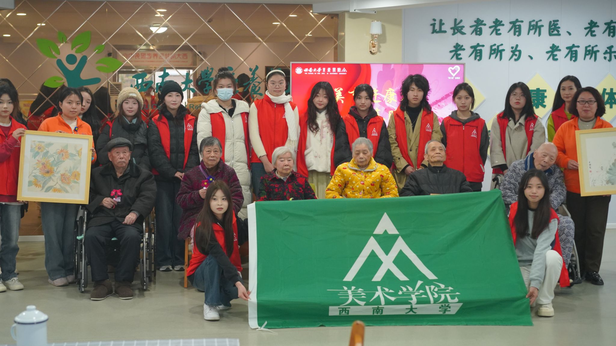 活动最后,老人们与志愿者热情合照,同时,beat365南社区养老服务中心工作人员也给予此次志愿活动充分肯定。“西小美”党员志愿服务队不仅用行动奉献了一堂生动的“美育志愿”实践课,同时也引导和帮助美院学生上好与现实相结合、服务社会的“雷锋精神”思政课。时代在变,学习雷锋的方式在变,但雷锋精神的底色从未改变。接下来,美术学院将持续发挥党员的模范带头作用,加强“学雷锋”志愿服务队伍建设,让雷锋精神在新时代绽放更加璀璨的光芒!