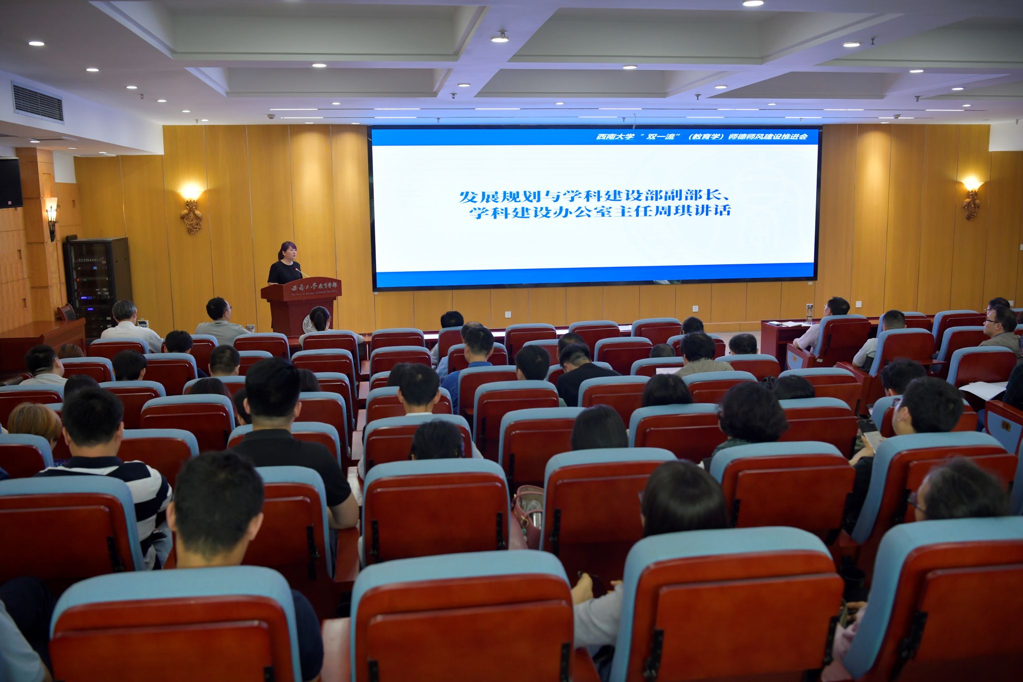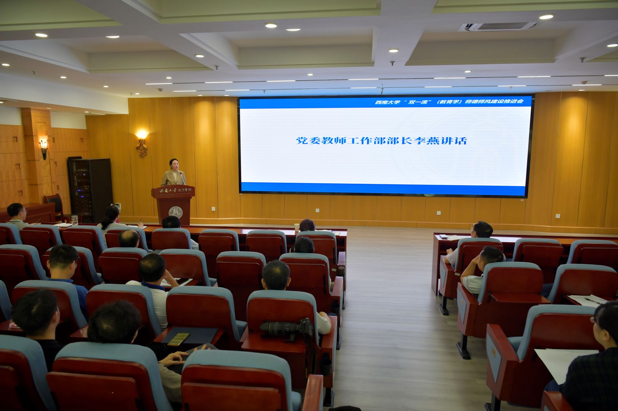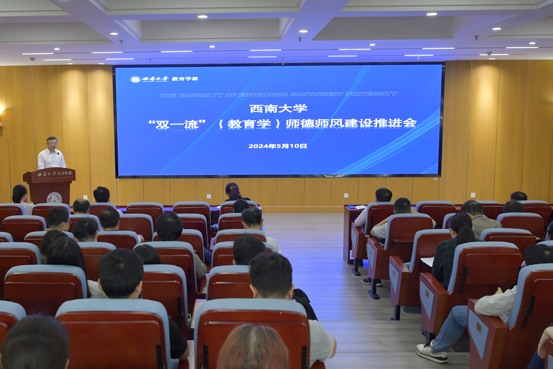 5月10日下午,beat365英国官网“双一流”(教育学)师德师风建设推进会在教育学部802报告厅顺利召开。学校党委教师工作部部长李燕,发展规划与学科建设部副部长、学科建设办公室主任周琪,教育学部全体班子成员和教育学部、西南民族教育与心理研究中心教职工参加会议。会议由学部党委书记周文全主持。