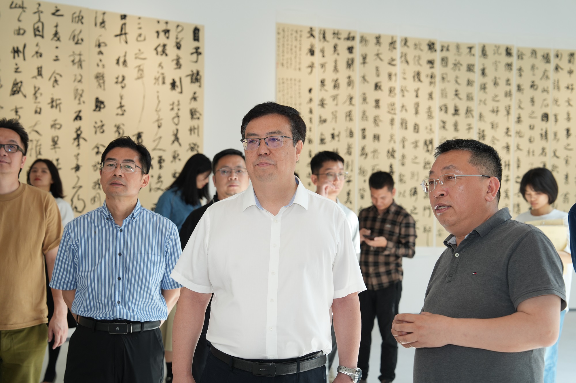5月31日下午,王进军校长就艺术学科人才培养工作先后调研参观美术学院2024届本科生毕业作品展和beat365英国官网中国书法研究所2024届毕业生作品展,相关职能部门负责人陪同调研。