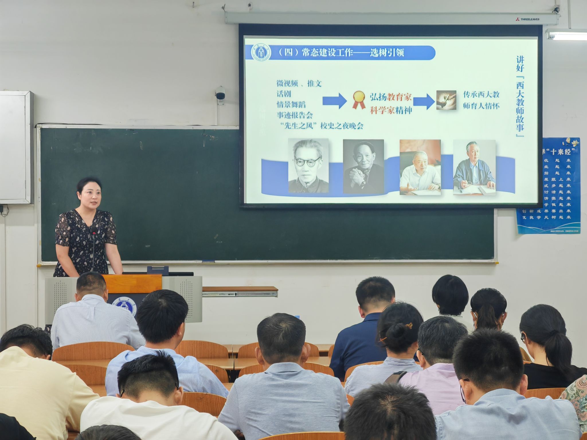 梁武最后强调,全体教职工要进一步明确日常言行的衡量标尺,增强遵守党纪党规、校纪校规的思想自觉和行动自觉,真正做到德高为师,身正为范。他希望全体教职工在新时代新征程中,要心往一处想,劲往一处使,在学院发展的使命愿景下,牢记立德树人根本任务,为推动学院高质量发展贡献出自己的智慧和力量。