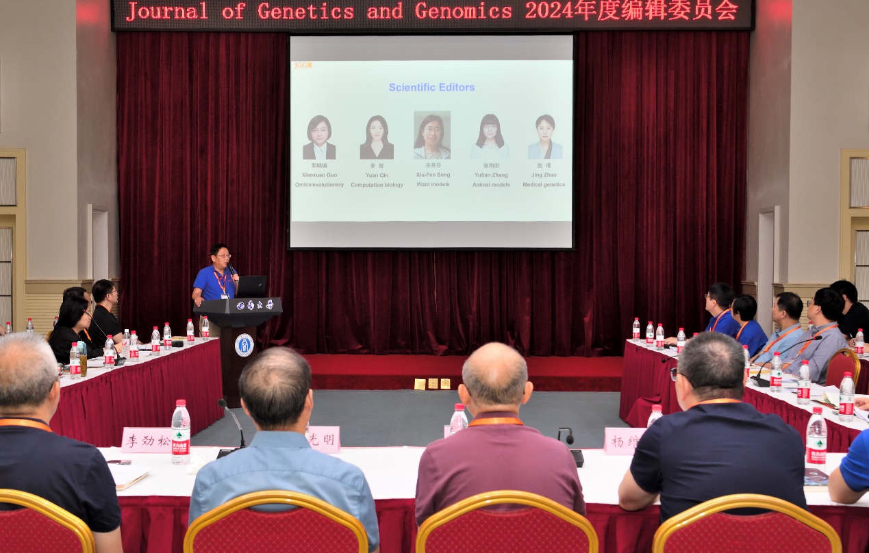 《Journal of Genetics and Genomics》创刊于1974年,是由中国科学院主管、中国遗传学会和中科院遗传与发育生物学研究所主办的高水平学术期刊,曾获“百种中国杰出学术期刊奖”。会前,校长王进军会见了与会专家,祝贺编委会和论坛成功召开,对各位专家长期以来给予学校事业发展的大力支持表示感谢。副校长周光明出席编委会并致欢迎辞,向与会专家和学者介绍了学校的发展情况,预祝本次编委会和论坛圆满成功。中科院院士、中国遗传学会原理事长张亚平研究员、中科院院士、中国遗传学会理事长杨维才研究员、中科院遗传与发育生物学研究所副所长(主持工作)傅向东研究员分别致辞。JGG主编左建儒研究员作2024年度工作汇报。编委们围绕期刊学术影响力提升、撰稿约稿计划、专刊组织等议题展开了热烈讨论,为推动期刊进一步蓬勃发展积极建言献策。