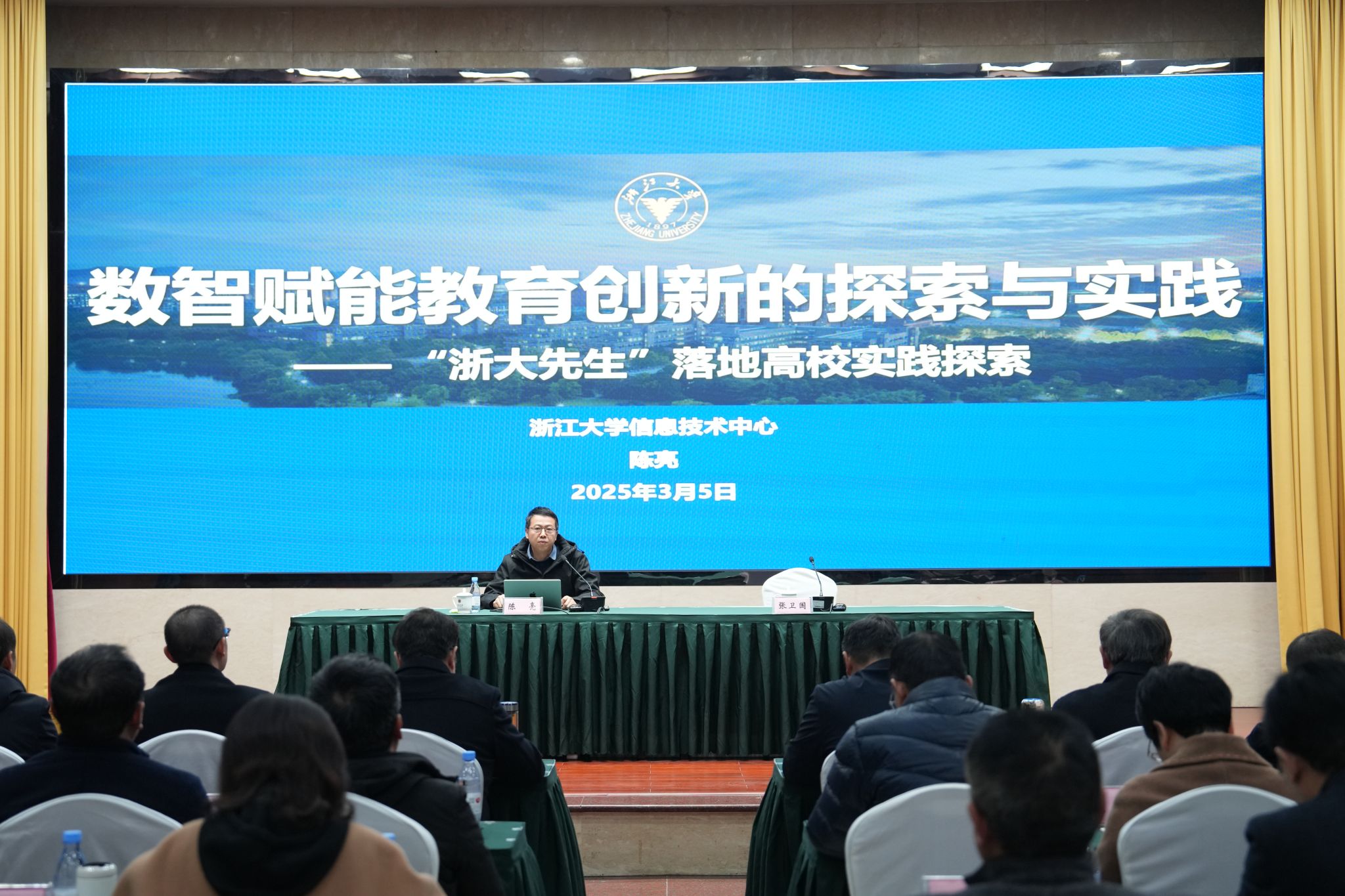 随后,浙江大学信息技术中心教育技术部副部长陈亮作了题为“‘浙大先生’落地高校实践”的专题报告。报告以“浙大先生”在科研、教学方面的具体应用为重点,展现了AI将赋能智慧教育的生动实践。