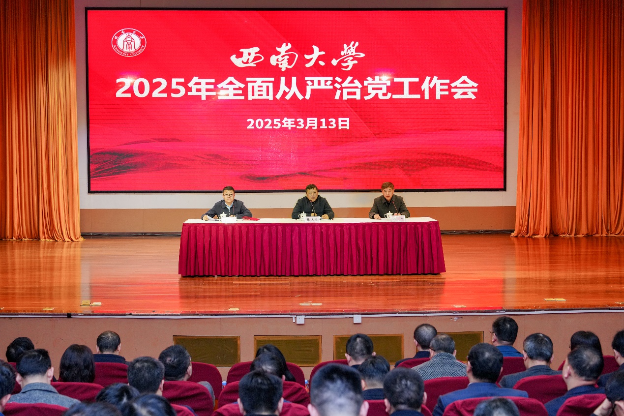 3月13日,学校召开2025年全面从严治党工作会,深入学习贯彻党中央和上级有关会议精神,研究部署学校全面从严治党工作。校领导、党委委员、纪委委员、副处级以上干部参加会议。党委副书记潘洵主持会议。