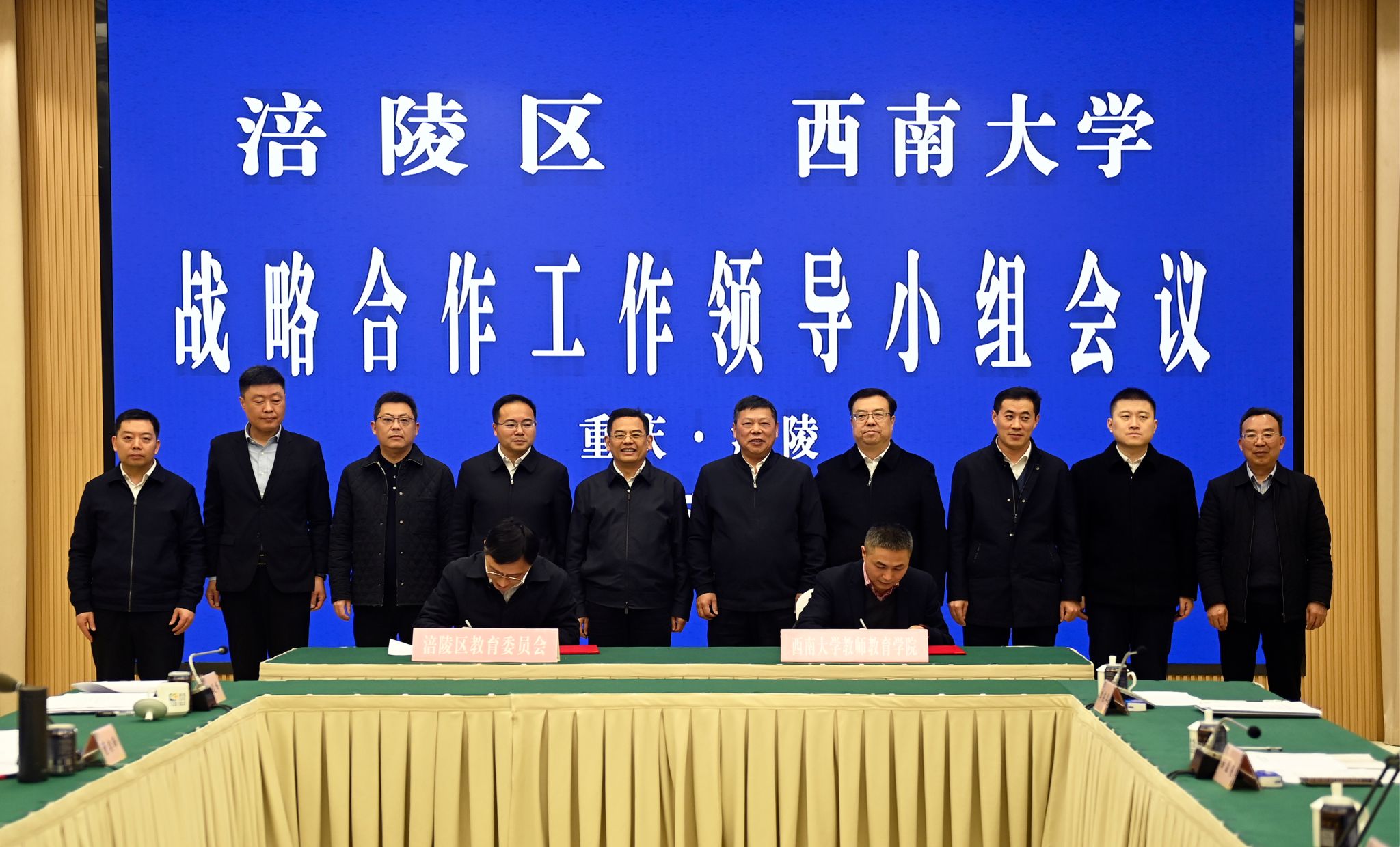 会上,涪陵研究院、渝东南农科院院长曾亮就战略合作相关工作推进情况、当前存在的问题和不足、深化战略合作工作谋划作汇报。涪陵区教委、区农业农村委、区人力社保局分别与学校教师教育学院、地理科学学院、学生职业发展与就业服务中心、附属中学、出版集团签订合作协议。