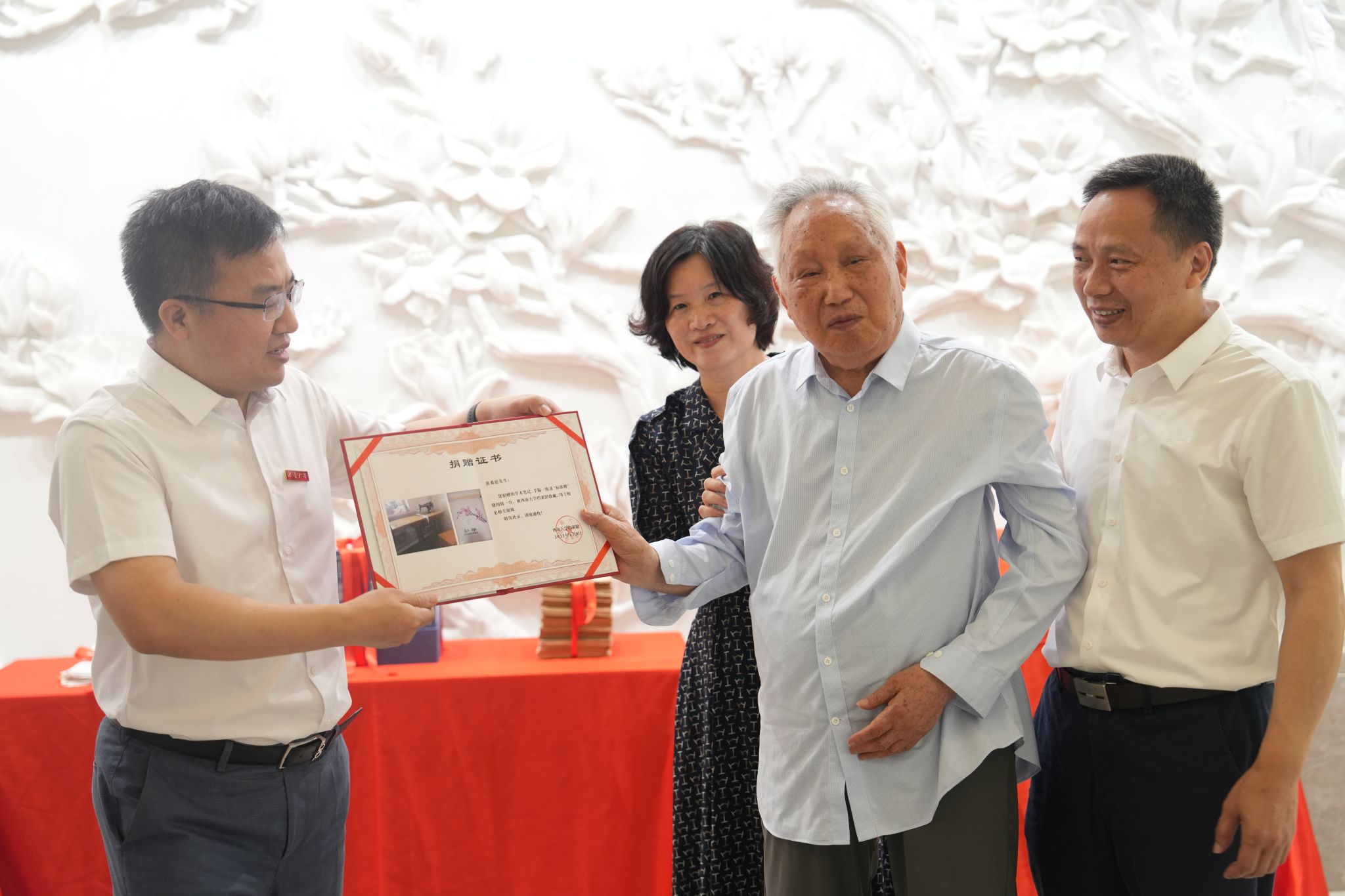 6月9日,在第18个国际档案日,学校在校史馆举行“庆祝国际档案日暨黄希庭先生学术笔记、手稿和实物捐赠仪式”,全国教书育人楷模、著名心理学家黄希庭到场,向学校捐赠一批学术笔记和手稿等实物,用于学校的校史展陈。
