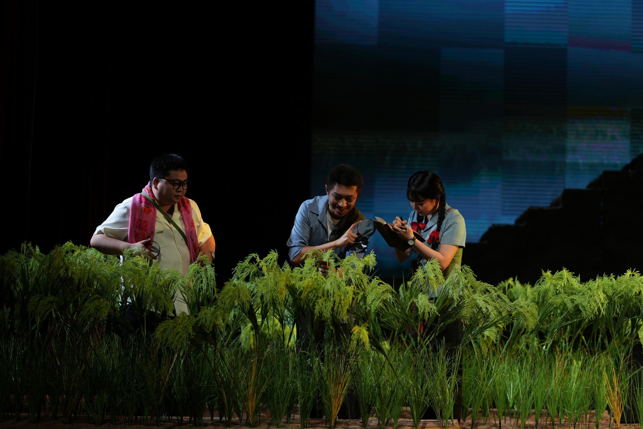 该剧以袁隆平院士的科研人生为主线,由学校师生深情创作演绎。舞台上,师生们以校友演校友,学弟演学长的方式真实还原了袁隆平求学、科研的关键场景,通过沉浸式舞台艺术展现了袁隆平院士“禾下乘凉梦”的初心与坚守,以及脚踏实地把论文写在祖国大地上的崇高风范,诠释了袁隆平院士 “让所有人远离饥饿” 的伟大情怀与 “人就像种子,要做一粒好种子” 的生命哲学。